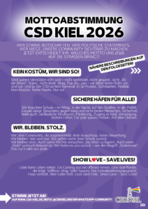hier auf www.csd-kiel.de, auf Instagram oder in der WhatsApp-Community.